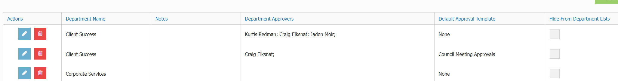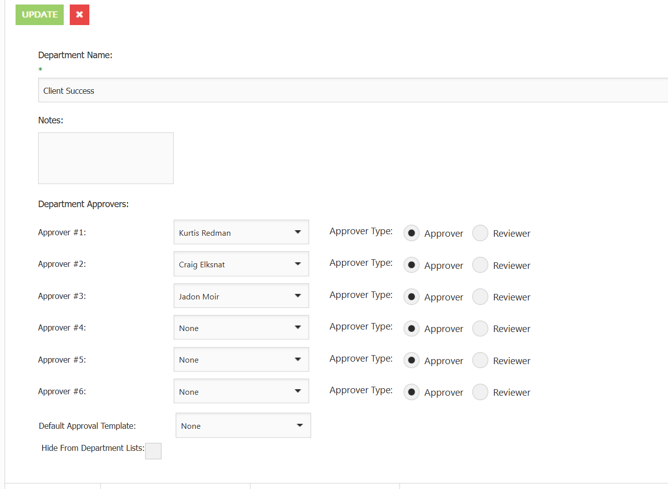 Department Approvers - Users set here will be set as the approvals in order of an Item when created with the Department