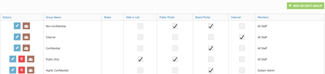 Board Portal | This controls the publishing behaviour of files that are assigned this security group. Checking this box will mean files with this confidentiality applied will be published to the Board portal. |