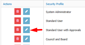 - Select the profile you want to update by clicking the Blue edit pencil